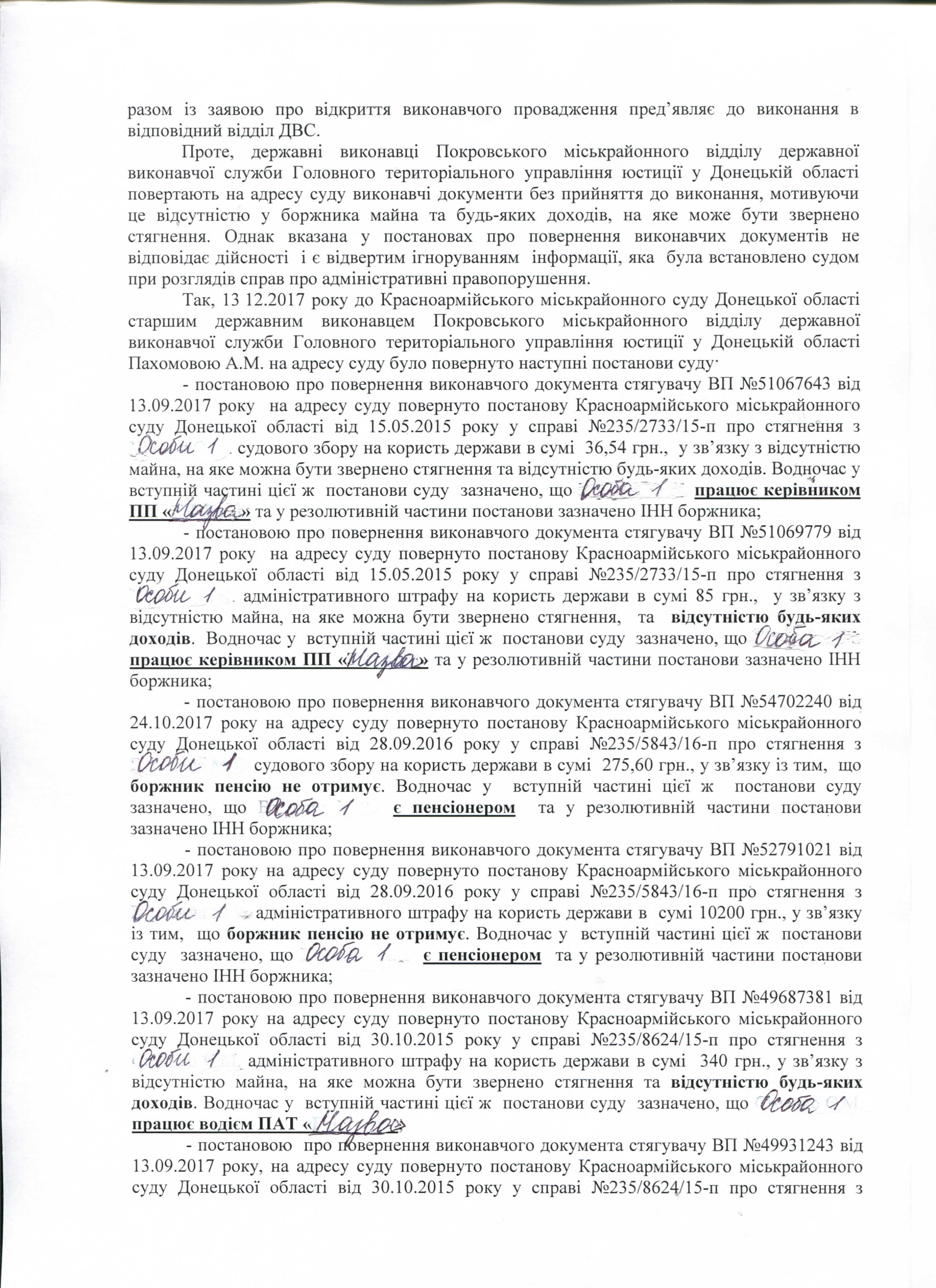 Внаслідок не виконання Покровським ВДВС постанов суду в частині стягнення судового збору та штрафів, бюджет України втратив кошти у розмірі 325 628,00 грн.
