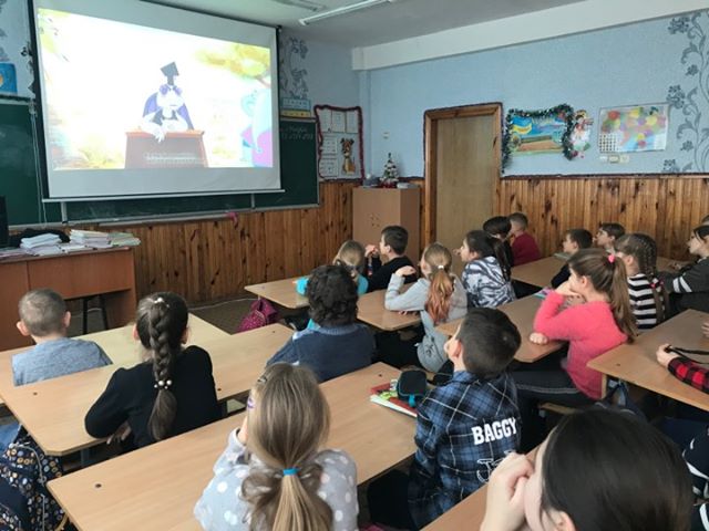 Майже 120 учнів четвертих класів переглянути мультфільм «Слон проти Жирафи», у якому відбувається спір між  Слоном і Жирафою, який вирішує суддя Черепаха. Учні спробували чесно та справедливо розсудити спір, а також поділилися думками, що вони знають про суд, хто такий суддя, чи вважають себе справедливими, які причини виникнення суперечок та шляхи їх розв’язання.