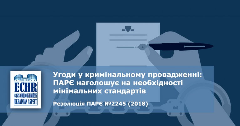 Про це йдеться в Резолюції Парламентської Асамблеї Ради Європи №2245 (2018), яка стосується практики укладання угод про визнання вини. Документ був прийнятий в жовтні 2018 року. Його переклад українською мовою публікує інформаційний ресурс «ECHR.Ukrainian Aspect».